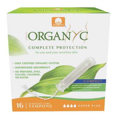 Organ(y)c Super Plus Organic Cotton Compact Applicator Tampons are great for the heaviest days and women with heavier flow periods. The applicator is made with 90% plant-based ingredients and is dermatologically tested. These have smooth insertion and are comfortable to wear.