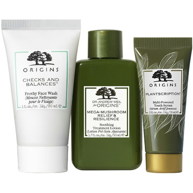 What it does: The best of Origins, to go wherever the holidays take you: cleanse and refresh with skin-balancing Frothy Face Wash; soothe the look of redness and prep skin for moisturizer with Soothing Treatment Lotion; and visibly reduce the look of lines and renew firmness with Multi-Powered Youth Serum.