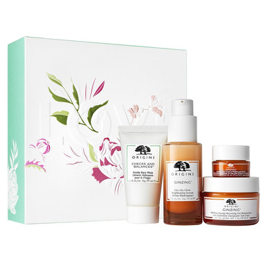 Origins radiance-boosting set—complete with cleanser, full-size serum, moisturizer and eye cream—for that springtime glow.
