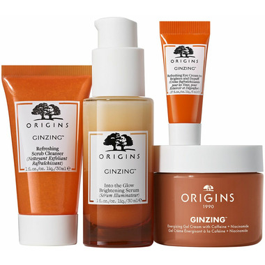 Four GinZing favourites including full-sizes of Origins Energizing Gel Cream and Into the Glow Brightening Serum for the ultimate holiday glow-up.