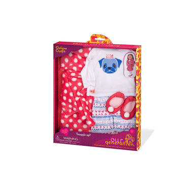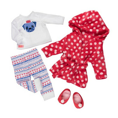Includes: 1 bathrobe, 1 pajama set and 1 pair of slippers.