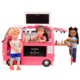 Use the real chalkboard to announce your daily specials, and take customers orders on the order pad. DonҒt forget to give change! Hear the grill, burners, oven timer, and fan hood make lifelike sounds while you cook a huge selection of food! The folding table attachment and working string lights create a cozy dining counter out back. Do you feel a raindrop? Use the working windshield wipers to clear it away. Better weather at the boardwalk? Just pack up your truck and drive anywhere you like, using the working turn signals and brake lights to drive safely. With so many fun and detailed features, the Pink Grill to Go Food Truck will be the new favorite hang-out spot in the OG neighborhood!