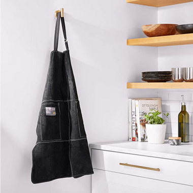 - Black leather design also means that this apron, in addition to functioning great, will look good too!