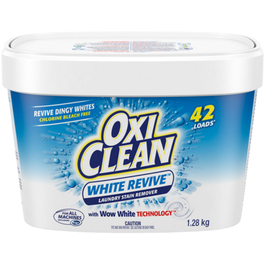 Bring back brilliant whites with OxiClean White Revive Laundry Stain Remover Powder. This powerful stain remover revives your dingy white clothes, keeping them looking like new longer. White Revive whitens 40% better than chlorine bleach with no chlorine bleach or smell, and its safe on colours.