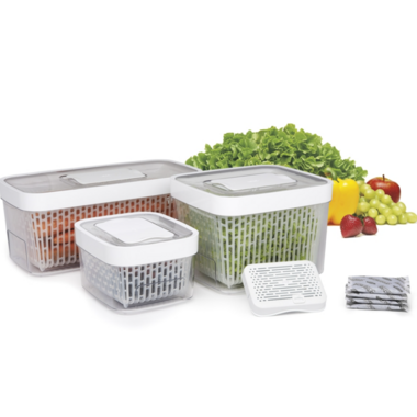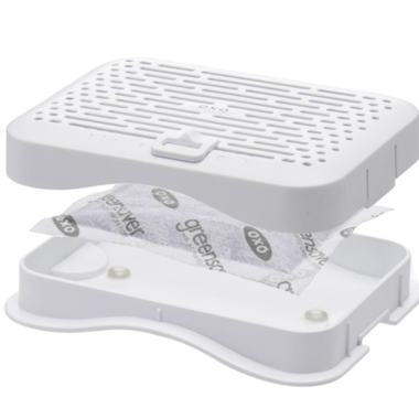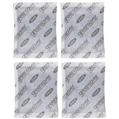 OXO Good Grips Greensaver Carbon Refills are made from all-natural coconut husks. These GreenSaver non-toxic activated carbon filters are designed to trap and absorb ethylene gas, slowing down spoilage and keeping fruits and vegetables fresh longer. These filters are for use with OXO Good Grips GreenSaver Produce Keepers.