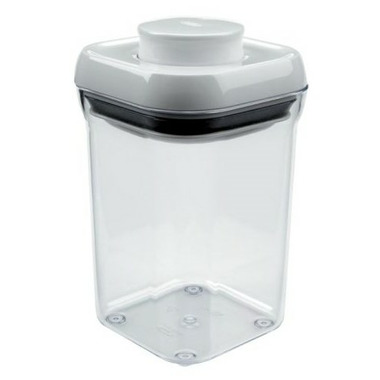 OXO Good Grips POP Container is the ideal size for a 1lb box of brown sugar. With the press of a button, you get an airtight seal. Containers are stackable for optimal countertop and pantry organization. They are great for use in the garage, sewing room, playroom and more. Container corners allow for easy pouring. Pop-up button serves as handle to lift off lid.