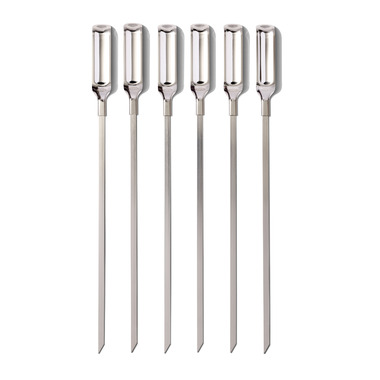 BBQ Skewers, set of 6, 38cm, stainless steel. Food easily glides onto the skewer and the flat design keeps your kabobs steady as they cook.