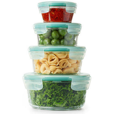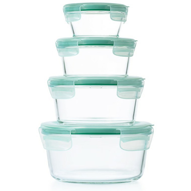 This set includes the 7 Cup, 4 Cup, 2 Cup, and 1 Cup Smart Seal Glass Round Containers and matching lids.