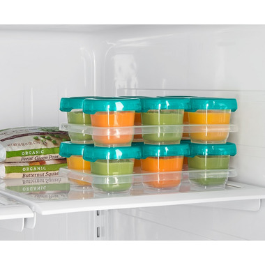 OXO Tot Baby Blocks Freezer Storage Containers portions, stores, freezes, heats, and serves home-cooked baby meals. Baby Blocks are airtight, watertight and leakproof for safe storage and spill-free outings. Blocks fit into the freezing tray, and multiple trays can be stacked to save space in the freezer. Clear lids and bodies allow you to see what’s inside, and measurement markings make portioning a breeze.