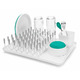 OXO Tot Bottle Drying Rack keeps over eight bottles and accessories elevated and upright. Items set out to dry don’t have to sit in a pool of water, thanks to the raised ribs on the bottom of the Bottle Drying Rack. Additional space at the front is useful for small parts. A removable cup, ideal for utensils, straws and medicine droppers, attaches in multiple places.