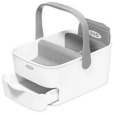 This OXO Tot Diaper Caddy with Changing Mat with a place for everyday diaper changing essentials – so you’ll never be caught empty-handed. The generously sized, comfortable folding Mat fits right inside, for changes anytime, anywhere. A large-capacity wipes compartment fits most wipes dispensers, while the storage area keeps diapers and lotions at the ready. The accessory drawer provides easy access to ointments, grooming kits, first aid supplies – even backup pacifiers. The locking handle makes it easy to grab and go, making you ready for any diaper emergency