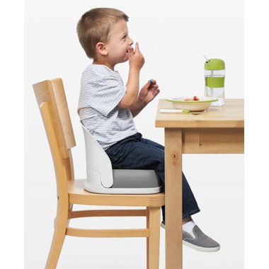 I use this booster seat everyday and it is so easy to clean. Fits really well in the dining room as well. Very convenient also to bring to my in laws.