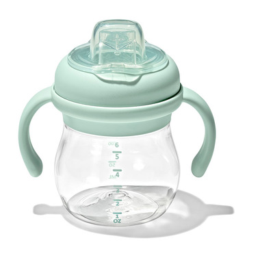 Smarter (and tougher) than the average sippy cup, the 6 oz. OXO Tot Transitions Soft Spout Sippy Cup has a silicone spout that conforms to babys mouth for a comfortable sip and less mess. Plus, the hinged cap closes to create a leakproof seal and protect the spout when not in use. The removable handles provide a comfortable grip for your little one, and the cap and spout are removable for easy, thorough cleaning. Dishwasher safe.