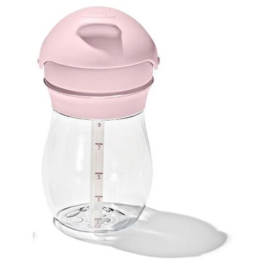 OXO Tot has designed these transitions straw cups to help minimize the big mess that comes with big kid sips. The almond-shaped, spill-proof straw conforms to your tots mouth, easing the transition from bottle, breastfeeding or sippy cup. The straw valve opens as soon as tots lips touch it for easy drinking, and the hinged cap closes to create a leakproof seal. The cap and straw are removable for easy, thorough cleaning. BPA free. Dishwasher safe.