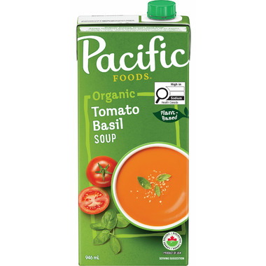 Pacific Foods plant-based organic creamy tomato basil soup.