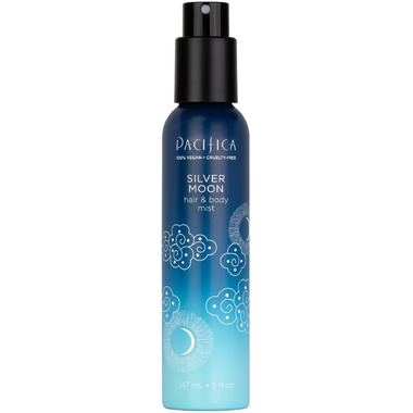 Pacifica's Silver Moon Hair & Body Mist is a unisex earthy blend combining notes of creamy vanilla, warm tonka, almond, woody santal, and cardamom.