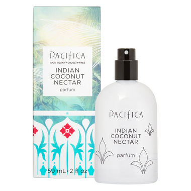 Pacifica's Indian Coconut Nectar Perfume blends creamy coconut, vanilla, sugar crystals, and resinous amber in natural grain alcohol to help ground your mind.