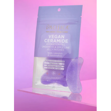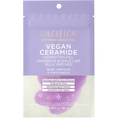 The perfect soothing self-care escape for your sensitive skin. Pacifica's dermatologist-tested, fragrance-free, ultra hydrating bio-cellulose undereye and smile line jelly patches are made with vegan ceramides to support your skins barrier. With soothing calendula and marshmallow root extract, these smile & undereye patches help hydrate & repair skin while helping to reduce puffiness. This resealable pack contains 4 patches for multiple uses and pop in the fridge when your skin needs some extra support.