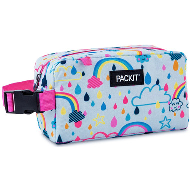 Freezable Snack Box, with buckle handle, rainbow sky. PackIt is the original freezable snack box with a patented, built-in cooling technology that keeps anything you pack cooler, longer - up to 10 hours! The freezable gel is permanently built into the walls of the bag. It's perfect for school, work, the sports field, travel or just about anywhere. Simply flatten the bag and store it in the freezer overnight (12 hours). In the morning, the walls of the bag will be completely frozen and ready for filling.