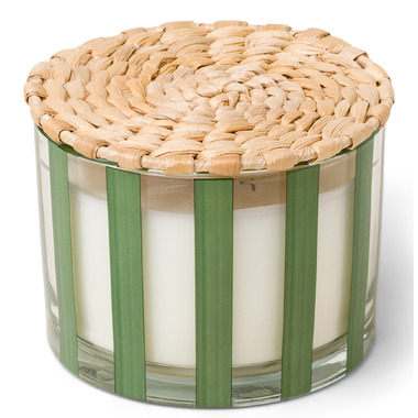 Fresh scents, sleek design, and sustainable vessels? Oh yes, you Cannes with the Al Fresco 12 oz. Candle - Misted Lime! Inspired by the umbrellas found on European beaches and the colors of the French Riviera, the Al Fresco collection showcases timeless striped glass vessels and refreshing fragrances. This 12 oz. candle is hand-poured in a reusable glass vessel with a stylish rattan lid that can be used as storage for jewelry, office supplies, or any small items after removing the wax.