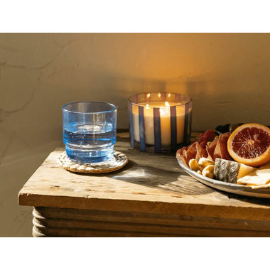 Fresh scents, sleek design, and sustainable vessels? Oh yes, you Cannes with the Al Fresco 12 oz. Candle - Rosemary + Sea Salt! Inspired by the umbrellas found on European beaches and the colors of the French Riviera, the Al Fresco collection showcases timeless striped glass vessels and refreshing fragrances. This 12 oz. candle is hand-poured in a reusable glass vessel with a stylish rattan lid that can be used as storage for jewelry, office supplies, or any small items after removing the wax.