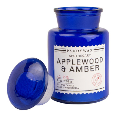 Paddywax Blue Apothecary Applewood & Amber Candle is a combination of Paddywax signature Soy Wax, paired with the perfect remedy of Applewood and Amber fragrance notes. Hand-poured in a 8 oz. vintage-inspired Blue Apothecary glass bottle.