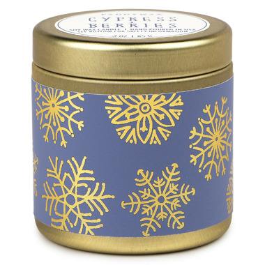 Paddywax Kaleidoscope Gold Tin Snowflakes Cypress & Berries Candle