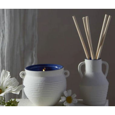 Escape to an island in the Aegean Sea with the Santorini collection. Influenced by timeless texture, this collection will transport you to a volcanic island of pure paradise. This 4 fl oz diffuser features 5 wood reeds that can be easily flipped for a fragrance refresh. After enjoying the Santorini-inspired scents, this unique vessel can be repurposed as a stylish storage vase.