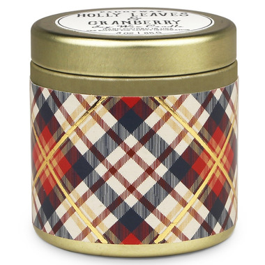 Paddywax Tartan Gold Tin Holly Leaves & Cranberry Candle