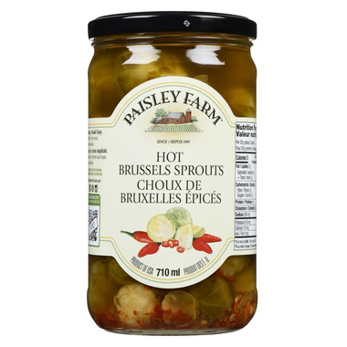 Brussel Sprouts, Water, Vinegar, Salt, Tabasco pepper flakes, Sodium Bilsulfite