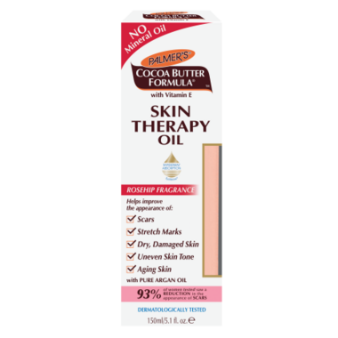 Palmer's Cocoa Butter Formula Skin Therapy Oil, Rosehip, is an advanced multi-purpose skin perfection product that can be used all over body and face. This preservative-free, phthalate free, lightweight formula contains an exclusive blend of key ingredients formulated to help improve the appearance of scars, stretch marks, dry, damaged skin, uneven skin tone, aging skin and fine lines and wrinkles. Skin looks and feels instantly soft and smooth with this unique, non-greasy, non-staining formula.