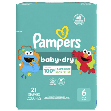 A good night’s sleep starts with a great diaper, and Pampers Baby-Dry diapers give you and your baby up to 100% leakproof nights and happy mornings. Made to protect your baby’s delicate skin, Pampers exclusive LockAway Channels absorb wetness and lock it safely away, while Pampers protective Dri-Weave Liner helps keep skin healthy. Plus, Pampers Baby-Dry Diapers are hypoallergenic and completely free of parabens and latex.* These are just a few of the many reasons Pampers is the #1 pediatrician recommended diaper brand—and your baby's best bet for comfy protection. Pampers also keep messes to a minimum. To help contain leaks and prevent blowouts, Pamperes Baby-Dry diapers feature all-around stretchy sides and large tape fasteners for a secure and comfy fit. Plus, they come equipped with our Dual Leak-Guard Barriers that are specially designed to protect around the legs, where leaks tend to happen most. And when your baby is due for a diaper change, our handy Wetness Indicator lets you know. No need for guesswork.
