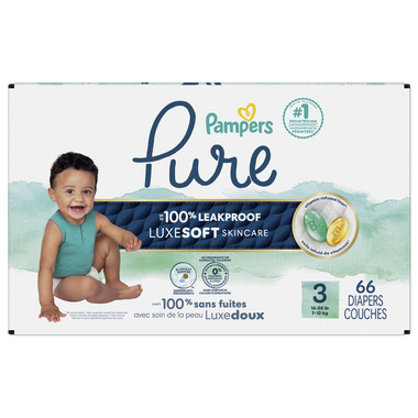• Pampers Pure Protection Diapers are gentle and hypoallergenic, for unbeatable skin care