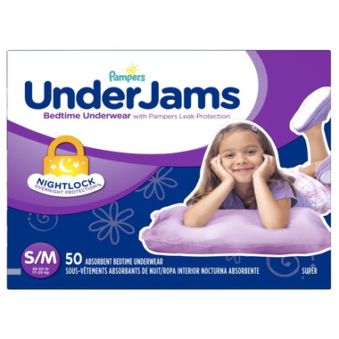 Make nighttime accidents feel like they never happened. With UnderJams, your little girl gets to wear Bedtime Underwear just like she's used to, but with the dryness of Pampers Leak Protection. That means, when nighttime accidents happen, she'll wake up dry and feeling a great sense of accomplishment. And it's all because UnderJams bedtime underwear have NightLock technology, which makes overnight accidents feel like they never happened. Plus, UnderJams are made with cloth-like material and a low waistband so not only are they quiet, but no one will ever know your little girl has some nighttime help when she needs it most.  UnderJams are available in S/M and L/XL