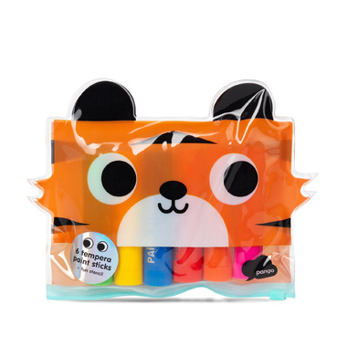 Go wild with the tiger paint set! This set includes a tiger shaped ziplock case, 6 paint sticks and a fun stencil!