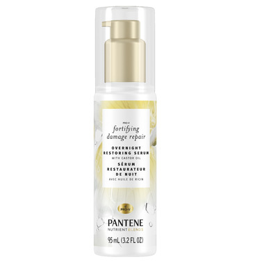 Pantene NutrientBlends Fortifying Damage Repair Overnight Serum helps erase damage while you sleep. With a nourishing formula, this restorative hair serum works overnight to help repair and restore so hair looks healthy in the morning. Just apply it at night to help restore damaged hair and make it smooth, shiny, and soft. Plus, the gentle formula is safe for chemically treated hair.