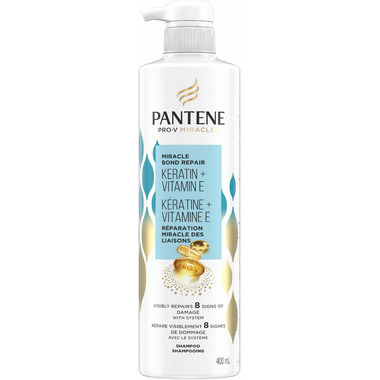 Pantene Pro-V Miracles Miracle Bond Repair Sulfate-Free Shampoo, made with Keratin and multi-vitamin complex, gently cleanses without drying.