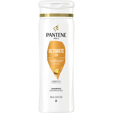 Your haircare should work as hard as you do. Pantene PRO-V Ultimate 10 Shampoo is a 10 in 1 multi-tasker that repairs, smooths, boosts shine and more. The benefits include: 1. repair for rough hair, 2. strength against damage, 3. silky softness, 4. brilliant shine, 5. smoothing, 6. moisture, 7. frizz control, 8. heat protection, 9. manageability, 10. tamed flyaways. This shampoo contains 2x more nutrients and won't strip your strands, giving you 10 benefits in 1 wash. This formula is crafted with protective anti-oxidants and pH balancers to leave you with shiny, healthy-looking hair and frizz control. With Pantene Pro-V Ultimate 10, say goodbye to dull, dry hair and unleash silky soft locks that look and feel beautiful for longer. 2X MORE NUTRIENTS WITH EVERY WASH Pantene PRO-V Ultimate 10 is designed to be used with other products in their Ultimate 10 collection to infuse your strands with 2x more nutrients for soft, shiny, and healthy-looking hair. This multi-benefit shampoo permeates every strand for long lasting softness and shine to keep your hair looking healthy around the clock. Ultimate 10 color-safe shampoo is crafted with protective antioxidants, Pro-Vitamin B5, pH balancers, and made without parabens or colorants.