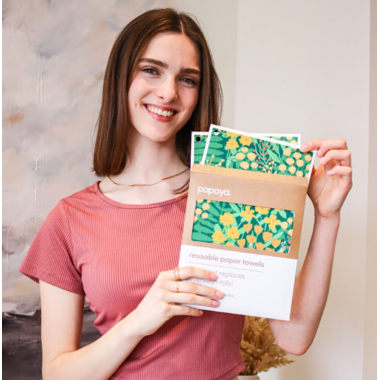 Papaya is the Home of the Reusable Paper Towel - 1 sheet replaces 17 ROLLS of disposable paper towel. Simply use it, rinse it in the sink and hang it to dry on the patented Papaya hook.