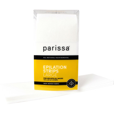 Parissa Large Epilation Strips work with soft or warm waxes. These non-woven strips are uniquely designed to prevent wax from soaking through. Large strips are ideal for all-over waxing. Strips are 100% biodegradable and non-toxic. Simply smooth on and zip off.