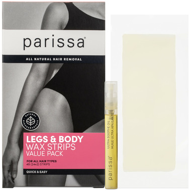 Parissa Legs & Body Wax Strips are mess-free and non-toxic. These ready-to-use strips are made from gentle cream-based wax. Shaped to fit your body. Kit includes Parissa Ultra Soothe Oil and biodegradable wax strips.
