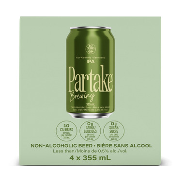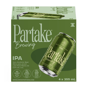 Partake's non-alcoholic IPA is boldly crafted from Cascade, Amarillo and Citrus hops. Pours a brilliant gold with a bouquet of sweet florals and honey on a light, bubbly body with dominant and lingering notes of grapefruit.