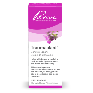 • Traumaplant comfrey provides a patented organic species of comfrey, Symphytum x uplandicum. Traumaplant helps to temporarily relieve aches and pains of muscles and ligaments, caused by strains and sprains (such as acute ankle distortion and back pain).
