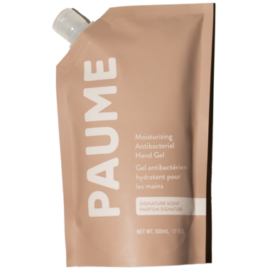 PAUME's antibacterial hand gel kills 99.99% of germs and uses premium plant powered hydration for clean, moisturized hands without the water. As effective as it is luxurious. This chic 90ml travel size bottle is made with 65% PCR (previously recycled plastic) and can be refilled using the 500ml Refill Bag.