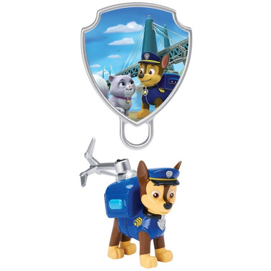 Climb to new heights of adventure with Action Pack Chase! Wearing his signature uniform, this poseable figure comes with a rescue backpack with an extendable hook and a pup badge. Take a look at Chase’s lenticular pup badge to see the animated mission and swing into action! Connect the pup badge to the edge of table, pull the hook out of Chase’s rescue backpack and attach it onto the pup badge. Let go of Chase and he’ll zip up to the rescue!