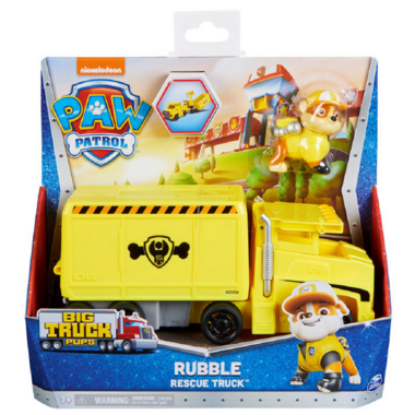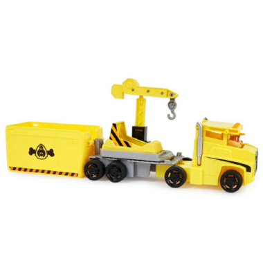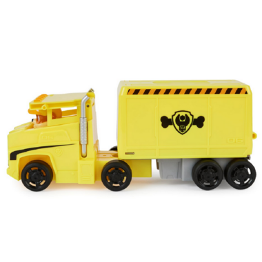 Team up with the pups for some action-packed highway rescues, in their Big Truck Pup - Rescue Truck! Each big rig rescue truck features an exciting vehicle transformation. Simply lift each truck’s cab roof, to get one of the pups in and out of the driver’s seat, then tilt the truck trailer forward and raise the trailer roof to activate command center mode, which converts each truck’s trailer into a 2-story command center and reveals their pup specific items such as the projectile launcher for Chase, mini rescue vehicle with recycling crane for Rocky, rescue jet for Skye, crane and material storage bin for Rubble, animal rescue tank and emergency rescue crane for Zuma and a water cannon projectile launcher for Marshall!