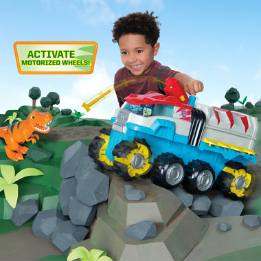 The Dino Patroller is the first-ever motorized team vehicle! With the push of a button, watch it go! When you spot a dino in trouble, launch the rescue nets!