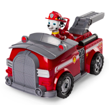 Zoom on land and soar through the air with Flip & Fly Marshall! Put this 2-in-1 vehicle in fire truck mode and kids can join Marshall as he races to the rescue! For airborne adventures, use the handle to lift and transform from fire truck to jet! Once you and Marshall are gliding through the air, use the launchers to release discs and water cannons that move objects and save the day! With bravery, friendship and teamwork always in mind, Marshall’s jet comes with a rescue hook to pick up pups in danger and lift them to safety! Collect Skye, Rubble and Chase to assemble your very own Paw Patrol at home! Head straight into adventure with Flip & Fly Marshall’s Transforming Vehicle!