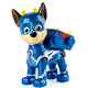 Mighty Pups Super PAWs Chase is on the case! Trading his police uniform for a cool Super PAWs uniform, PAW Patrol’s beloved police dog wears a shiny metallic uniform with silver accents, a mask and translucent working action pack with lightning bolt.
