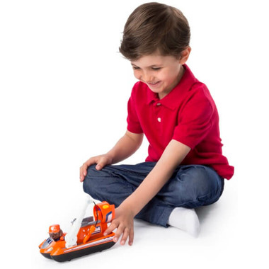 Go on an Ultimate Rescue with Zuma’s Rescue Hovercraft! With Zuma (figure included) as captain, there’s room for one more pup (not included) on this hovercraft! Load in your favorite pups and head out to save the day in Adventure Bay! Zuma’s Ultimate Rescue Hovercraft comes equipped with everything you need for an action-packed Ultimate Rescue Mission: roll with the real working wheels; spin the propeller; and pull out the rescue hook to airlift the citizens of Adventure Bay to safety!